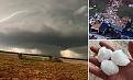 Monster supercell tornado rips through Midwest killing two and flattening Oklahoma town bringing hail the size of tennis balls and creating a 19,000ft high 'debris ball': 20,000 are still without power.